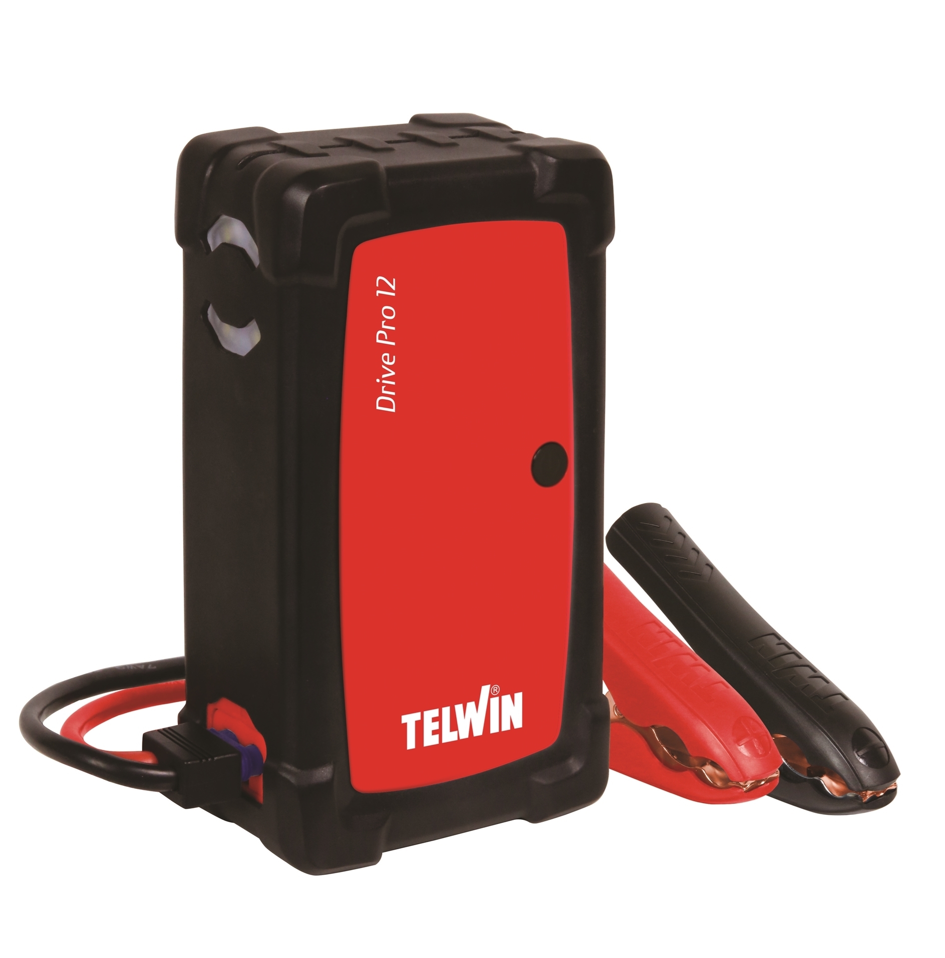 Startovací zdroj - Powerbanka Drive Pro 12 Telwin, přenosný startovací booster 12 V a Power Banka, startovací proud 500 A, pro napájení a nabíjení elektronických přístrojů jako tablet, smart phone, PC atd. 2x USB port, svítilna, startovací kabely. Bezúdržbová baterie.